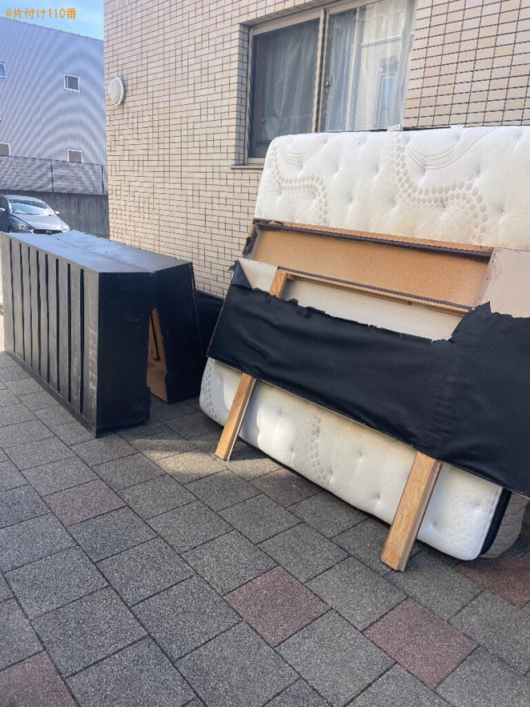 | 担当のコメント | マットレス付きキングベッドの処理にお困りのお客様からご相談いただきました。三月末までに回収可能なことがご依頼の決め手になったようです。片付け110番では、お客様のご都合に合わせてお伺いさせていただきます。不用品がございましたらまたいつでもご相談ください。 |